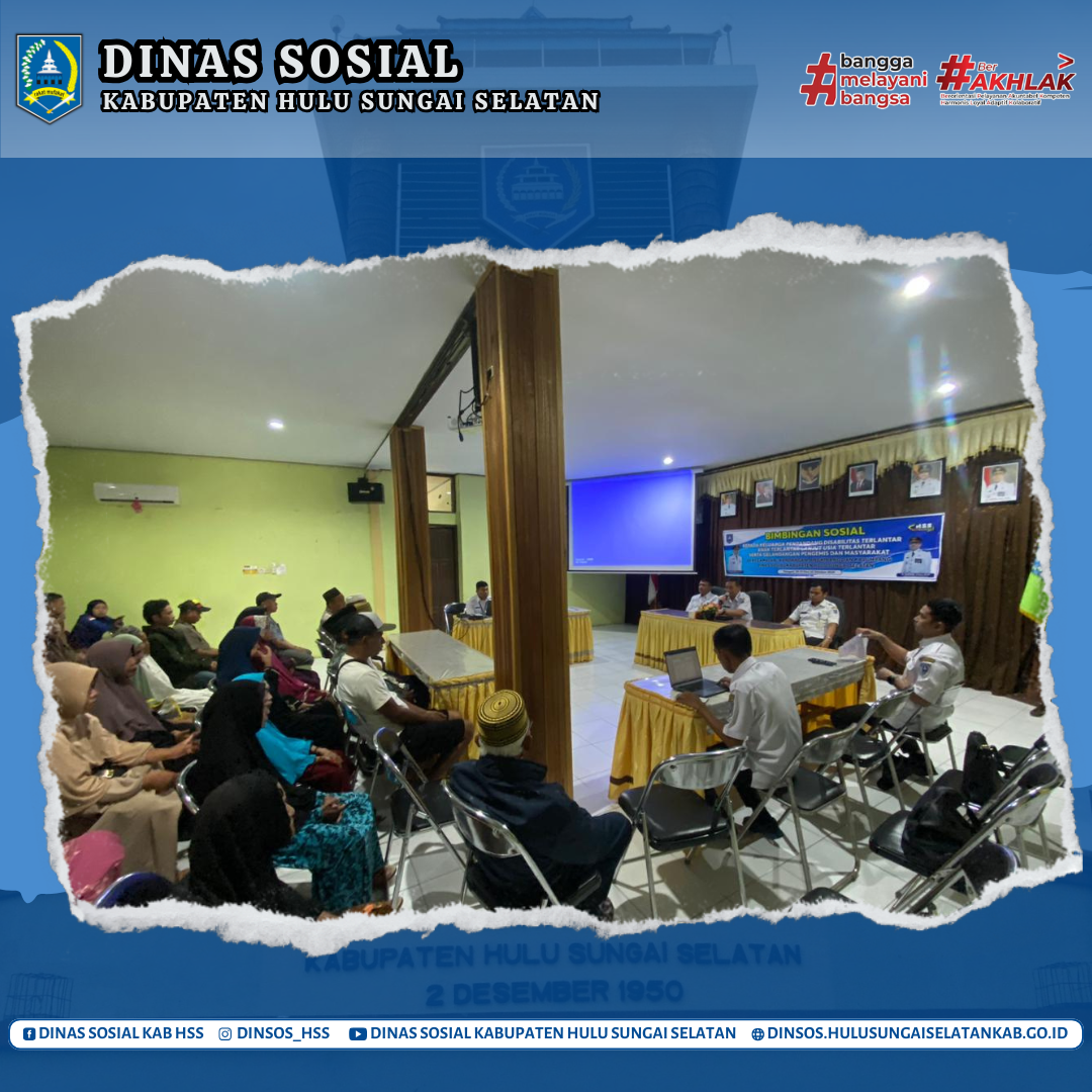 Rabu, 22 Oktober 2025, Dinas Sosial Kab. HSS melalui Bidang Rehabilitiasi Sosial melaksanakan kegiatan Bimbingan Sosial Kepada Keluarga Penyandang Disabilitas Terlantar, Anak Terlantar, Dan Lanjut Usia Terlantar Serta Gelandangan Pengemis Dan Masyarakat di 3 Kecamatan (Kecamatan kandangan, Angkinang dan Kalumpang) mulai Tanggal 20-21 Dan 22 Oktober 2025.