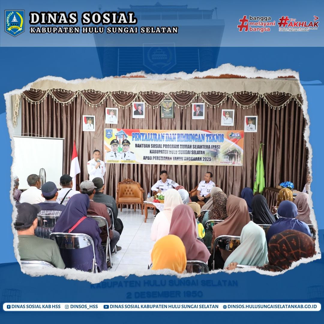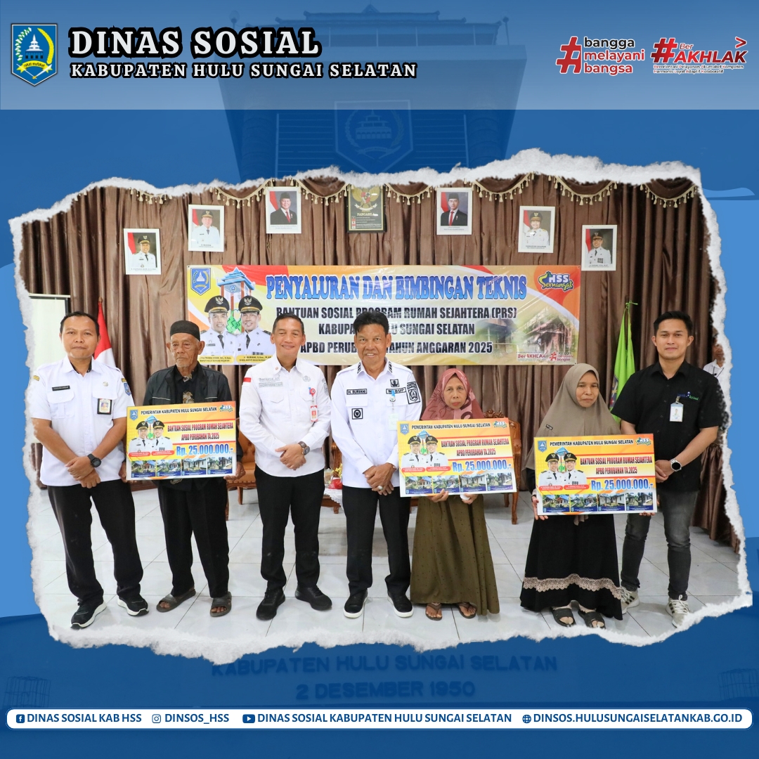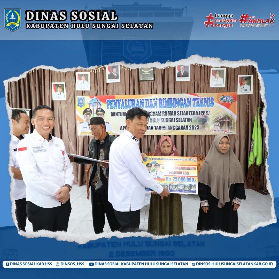 Rabu, 19 November 2025, Dinas Sosial kembali menunjukkan komitmennya dalam memperkuat kesejahteraan masyarakat melalui Program Rumah Sejahtera (PRS). Sebanyak 67 unit PRS diserahkan kepada Keluarga Penerima Manfaat (KPM) dari Kecamatan Daha Utara, Daha Selatan, dan Daha Barat pada Rabu, 19 November 2025 di Aula Kantor Kecamatan Daha Selatan.