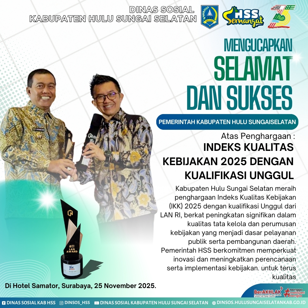 Selamat dan Sukses Pemkab HSS atas Penghargaan INDEKS KUALITAS KEBIJAKAN 2025By admin / November 25, 2025