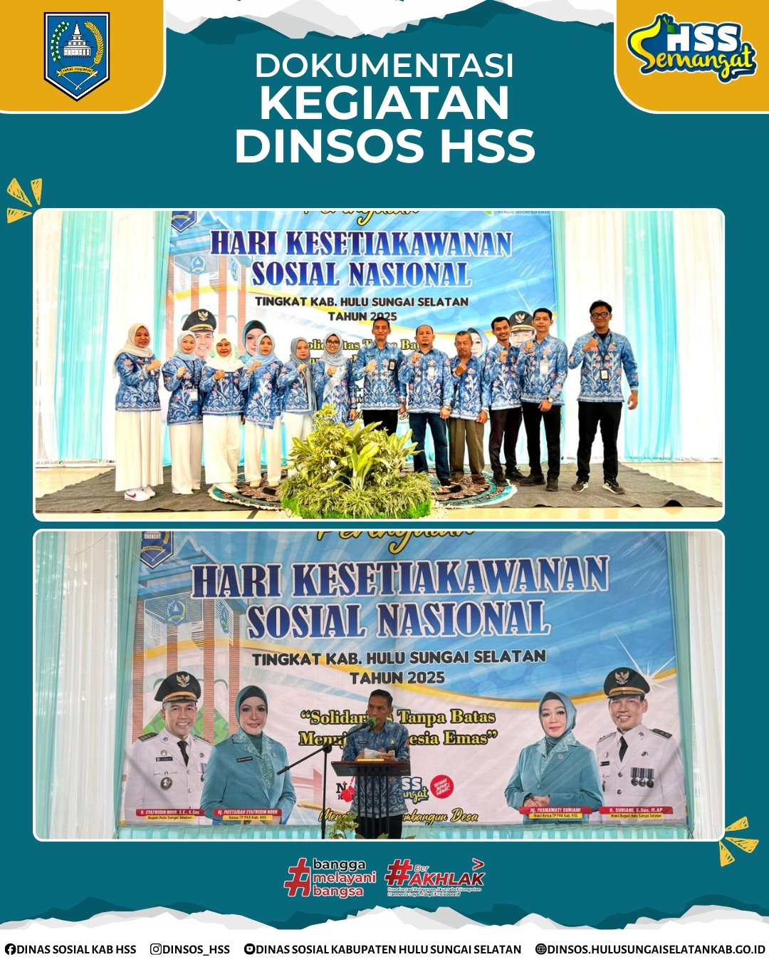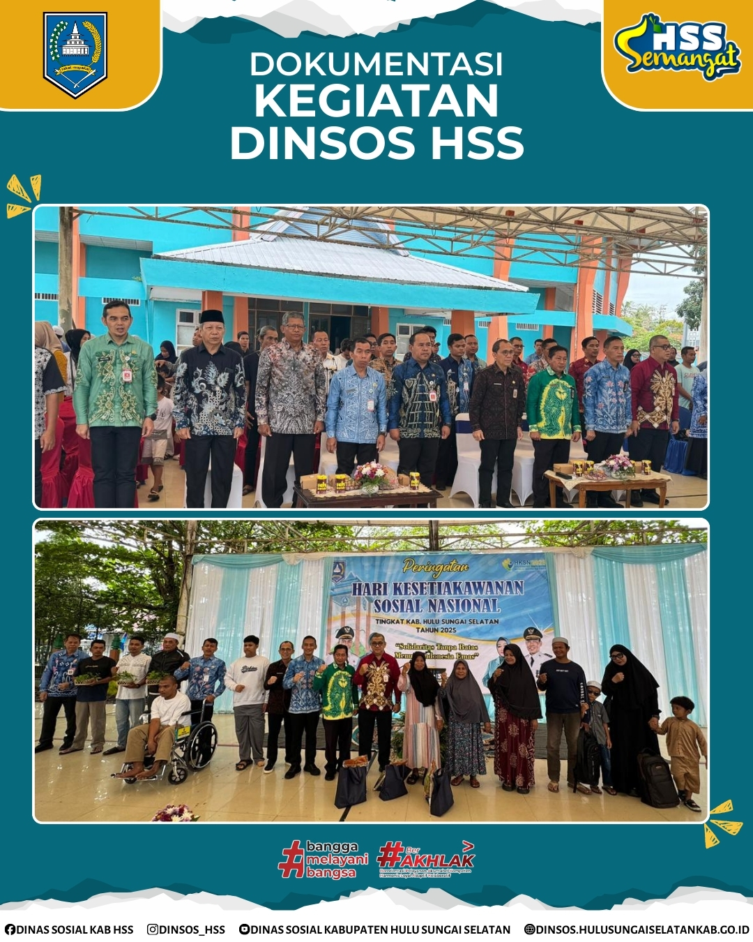 Jum’at, 19 Desember 2025 – Dinas Sosial Kabupaten Hulu Sungai Selatan melalui Bidang Pemberdayaan Sosial melaksanakan Peringatan Hari Kesetiakawanan Sosial Nasional (HKSN) Tingkat Kabupaten Hulu Sungai Selatan Tahun 2025.