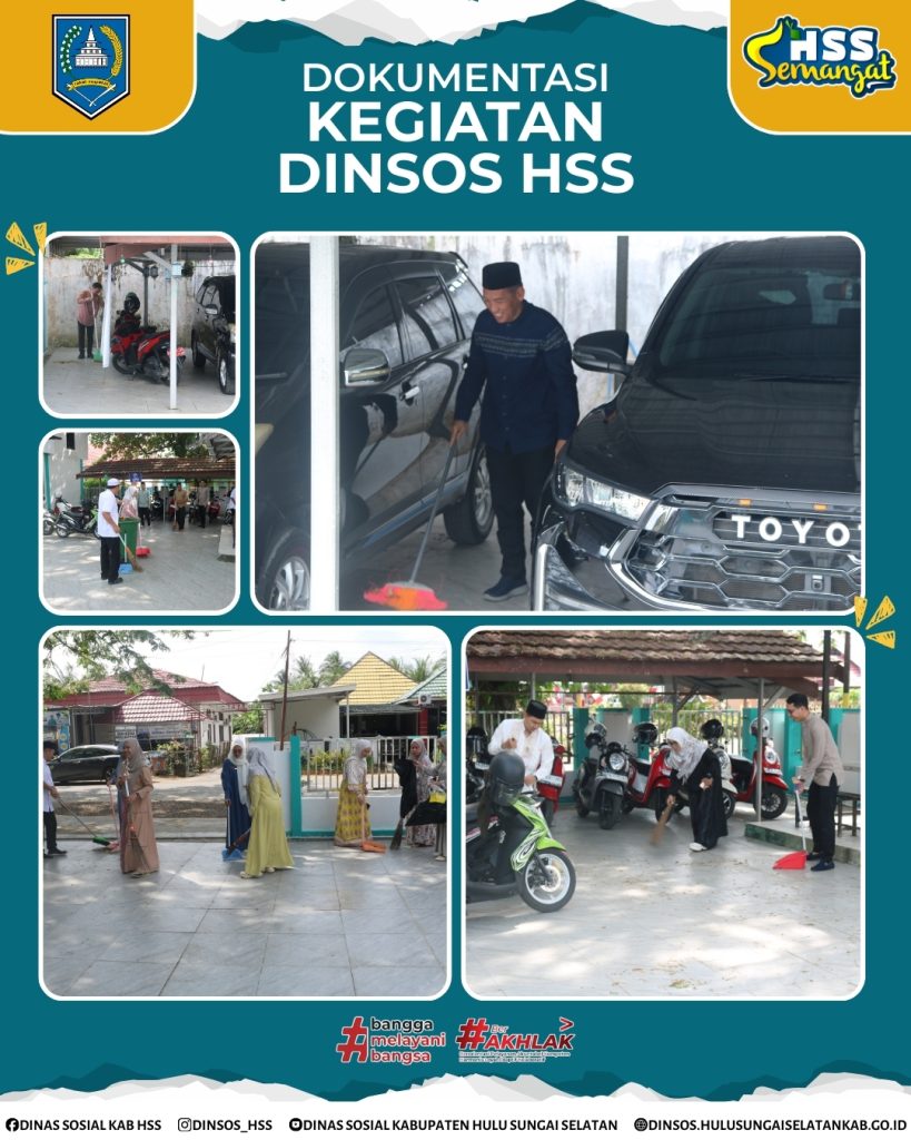 𝐇𝐮𝐥𝐮 𝐒𝐮𝐧𝐠𝐚𝐢 𝐒𝐞𝐥𝐚𝐭𝐚𝐧, 𝟐𝟕 𝐅𝐞𝐛𝐫𝐮𝐚𝐫𝐢 𝟐𝟎𝟐𝟔 – Dinas Sosial Kabupaten Hulu Sungai Selatan mengisi hari Jum’at dengan serangkaian kegiatan positif yang melibatkan seluruh pegawai. Mengawali pagi, dilaksanakan kegiatan 𝐉𝐮𝐦’𝐚𝐭 𝐁𝐞𝐫𝐬𝐢𝐡 di lingkungan kantor untuk menjaga kenyamanan dan kebersihan tempat kerja sebagai bagian dari iman.