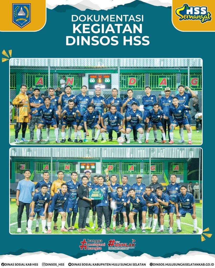 𝐇𝐮𝐥𝐮 𝐒𝐮𝐧𝐠𝐚𝐢 𝐒𝐞𝐥𝐚𝐭𝐚𝐧, 7 Maret 2026 – Semangat sportivitas dan kebersamaan ditunjukkan oleh tim sepak bola Dinas Sosial Kabupaten Hulu Sungai Selatan. Pada Sabtu (07/03), tim Dinsos HSS berhasil menjuarai 𝐏𝐨𝐬𝐢𝐬𝐢 𝐤𝐞-𝟐 (𝐑𝐮𝐧𝐧𝐞𝐫 𝐔𝐩) dalam ajang 𝐒𝐚𝐧𝐝𝐚𝐠𝐚 𝐌𝐢𝐧𝐢 𝐒𝐨𝐜𝐜𝐞𝐫 𝐓𝐫𝐨𝐟𝐞𝐨 𝐑𝐚𝐦𝐚𝐝𝐡𝐚𝐧 𝐊𝐡𝐮𝐬𝐮𝐬 𝐈𝐧𝐬𝐭𝐚𝐧𝐬𝐢.