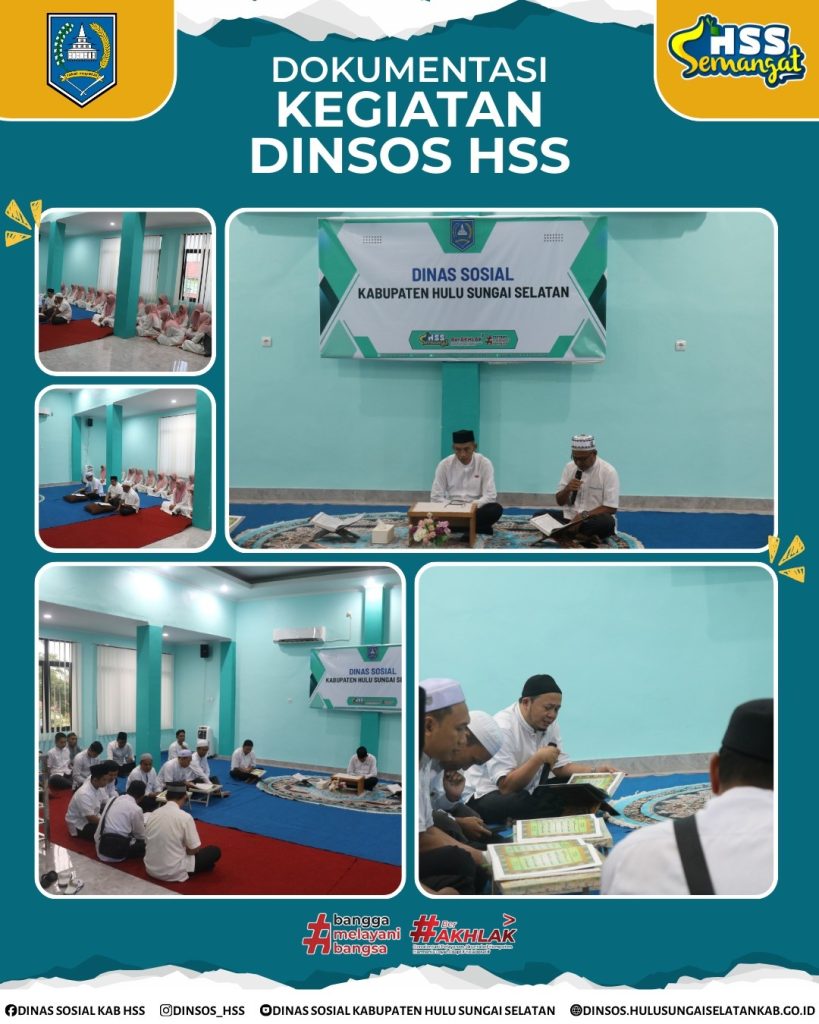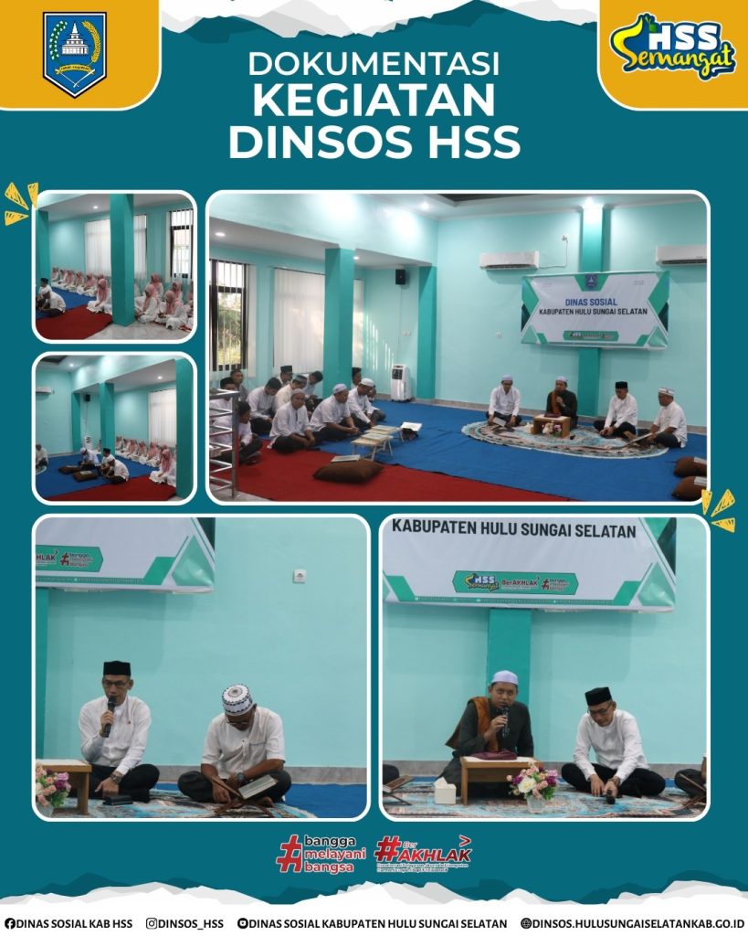 Acara kemudian dilanjutkan di Aula Dinas Sosial dengan agenda keagamaan, yakni 𝐁𝐞𝐭𝐚𝐦𝐚𝐭 𝐌𝐞𝐧𝐠𝐚𝐣𝐢 (𝐊𝐡𝐚𝐭𝐚𝐦𝐚𝐧 𝐀𝐥-𝐐𝐮𝐫’𝐚𝐧) dan 𝐓𝐚𝐮𝐬𝐢𝐲𝐚𝐡. Rangkaian kegiatan ini bertujuan untuk meningkatkan kekompakan antarpegawai serta mempertebal nilai-nilai keikhlasan dalam menjalankan tugas pelayanan sosial.
